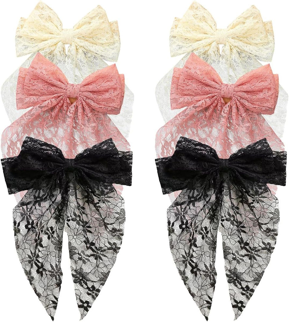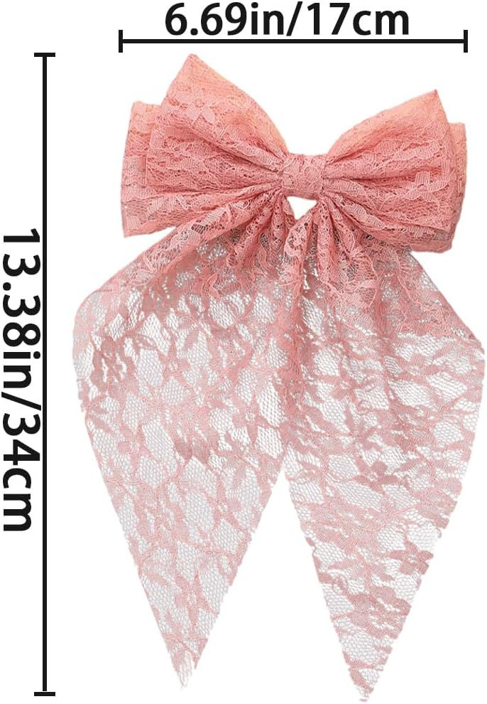 6 PCS Lace Bow Hair Clips Solid Color Big Bow Hair Clip Long Tail Ribbons with