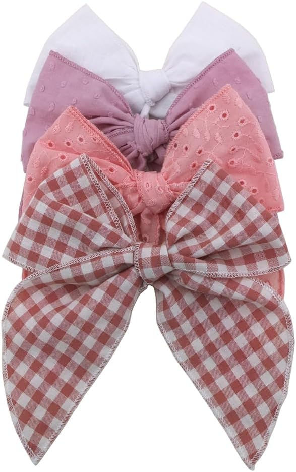 Pack of 4 Gorgeous Fable Bow Hair Clips for Girls Women Linen Hair Bow Alligato