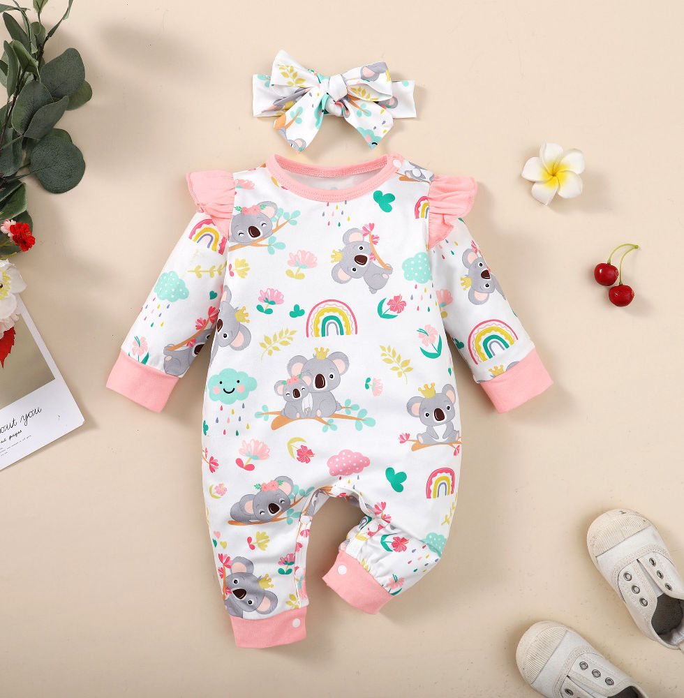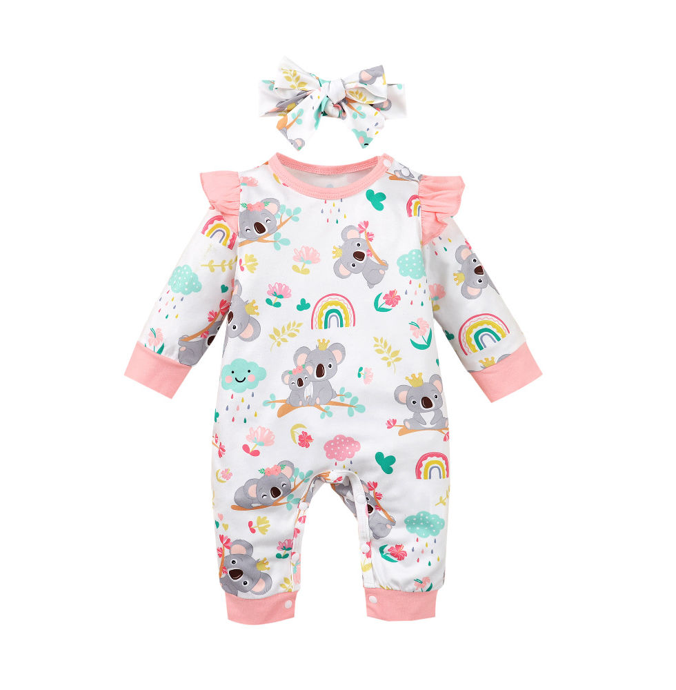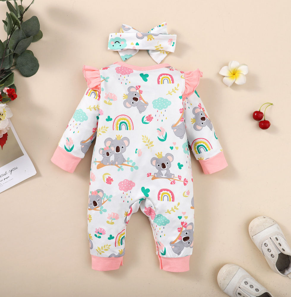 0-12 Months Newborn Baby Girl Clothes Long Sleeves Cute Cartoon Bodysuit with He