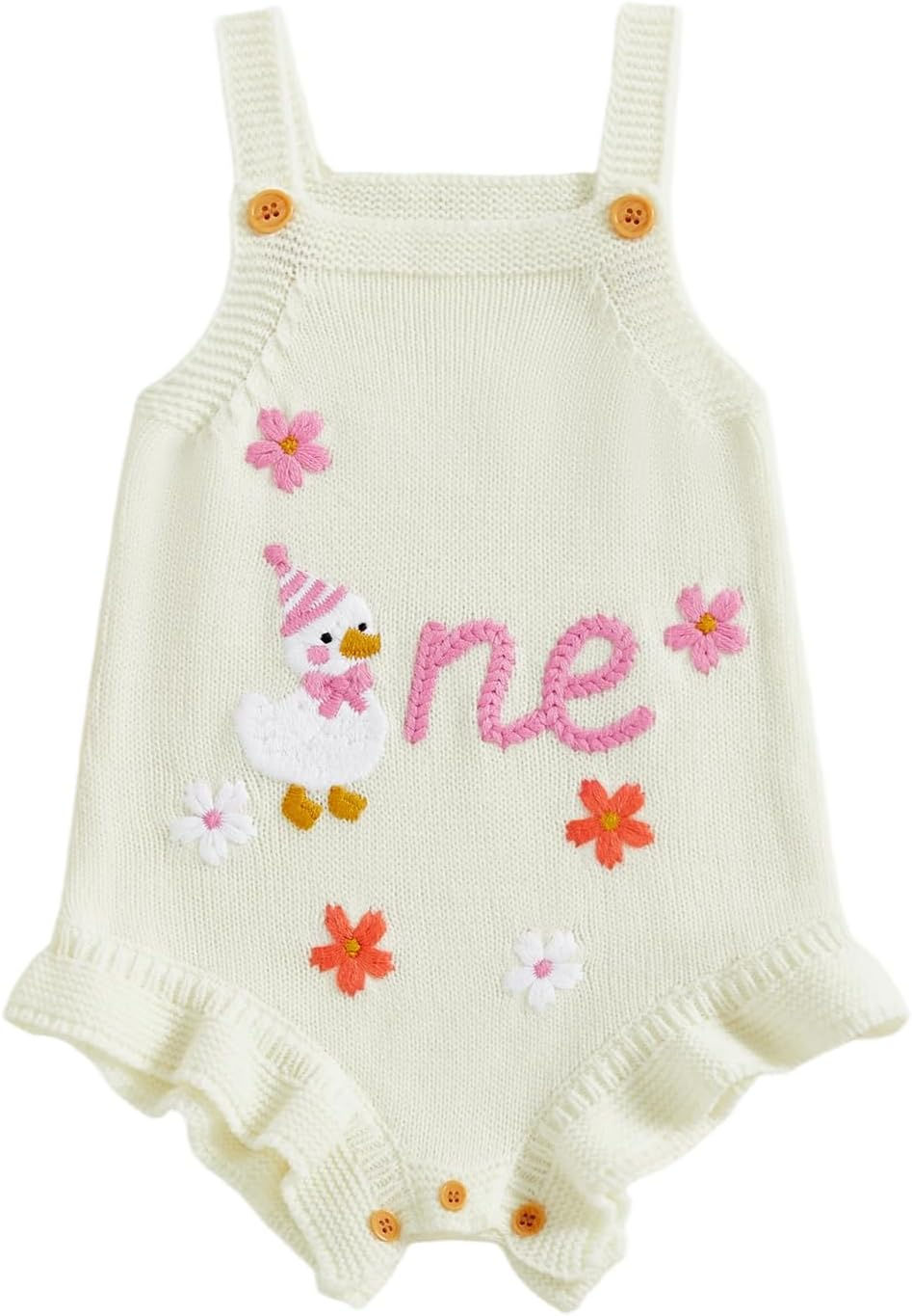 MAHUAOYIXI Baby Girls 1st Birthday Outfits Duck Floral Embroidery Sweater Squar