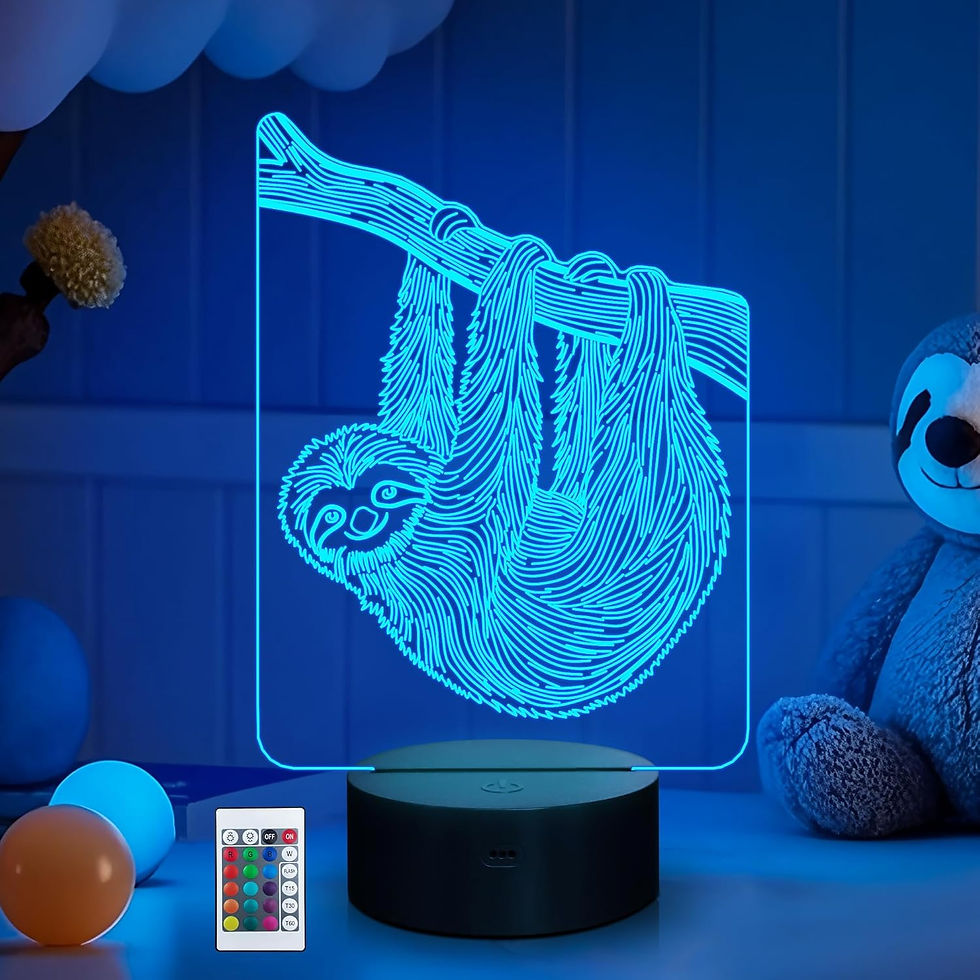 CoolGift Mart Sloth Night Light, 3D LED Optical Illusion Sloth Lamp with Remote