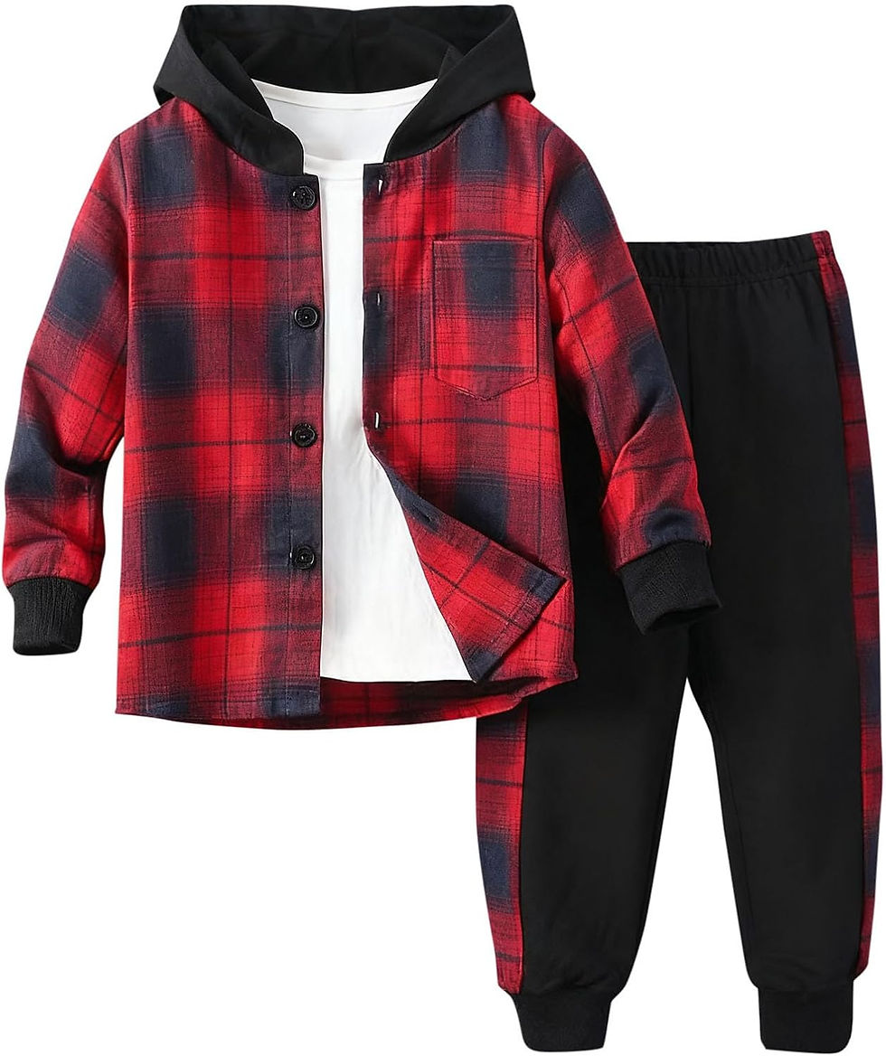 duxyoz Boys 2 Piece Outfits Sweatsuit Set Plaid Hoodie And Jogger Pants for Kid