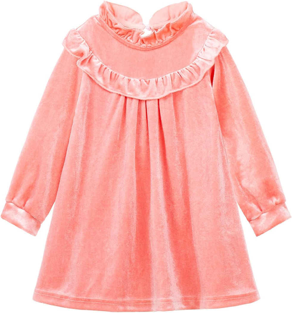 Arshiner Girls Velvet Dress Long Sleeve Dress Children's Casual Dress Plain Aut