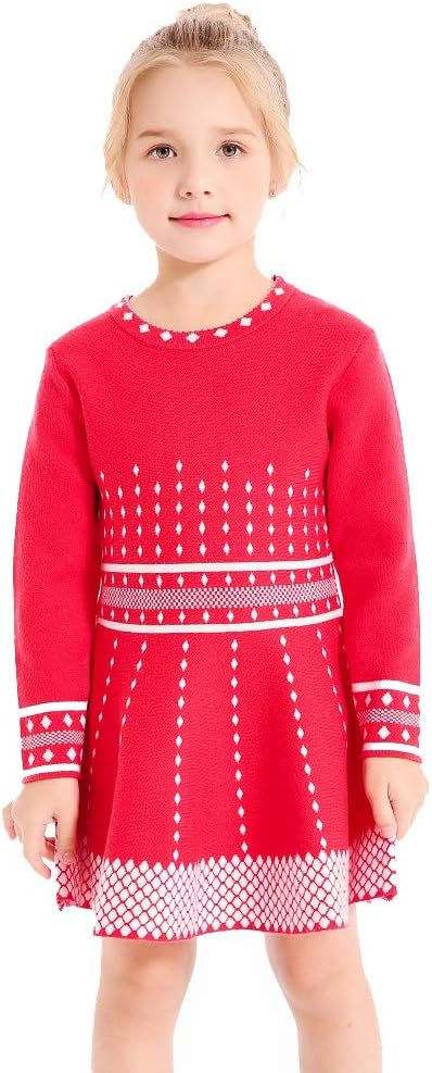 SMILING PINKER Girls Sweater Dress Argyle Knitted Winter Party Dress