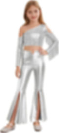 Moggemol Girls Jazz Disco Dance Outfits Kids Sequin Tassel Crop Tops and Metall