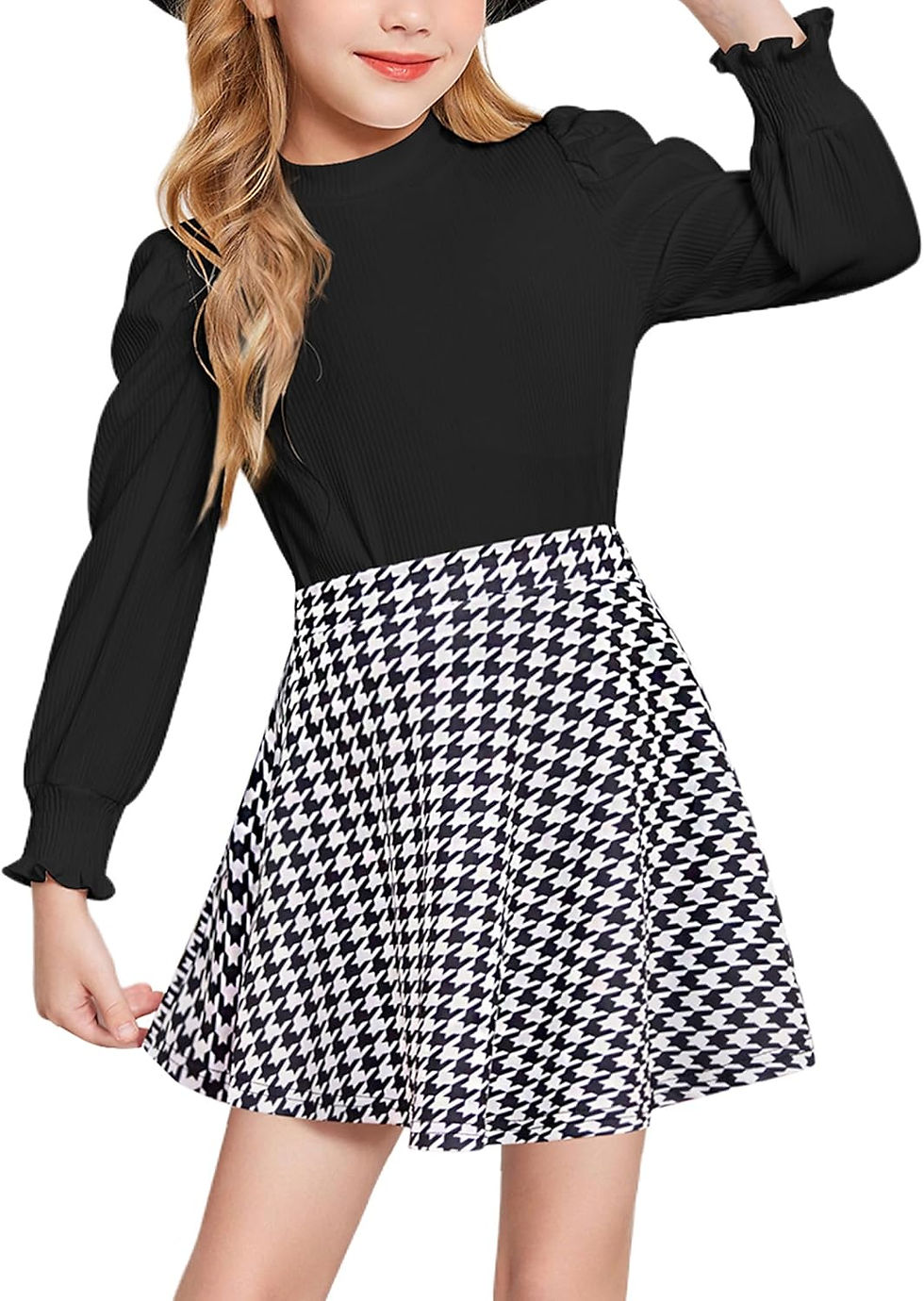 Arshiner Girls Clothing Sets Long Sleeve T-Shirt with Skirt Set Checkered Skirt