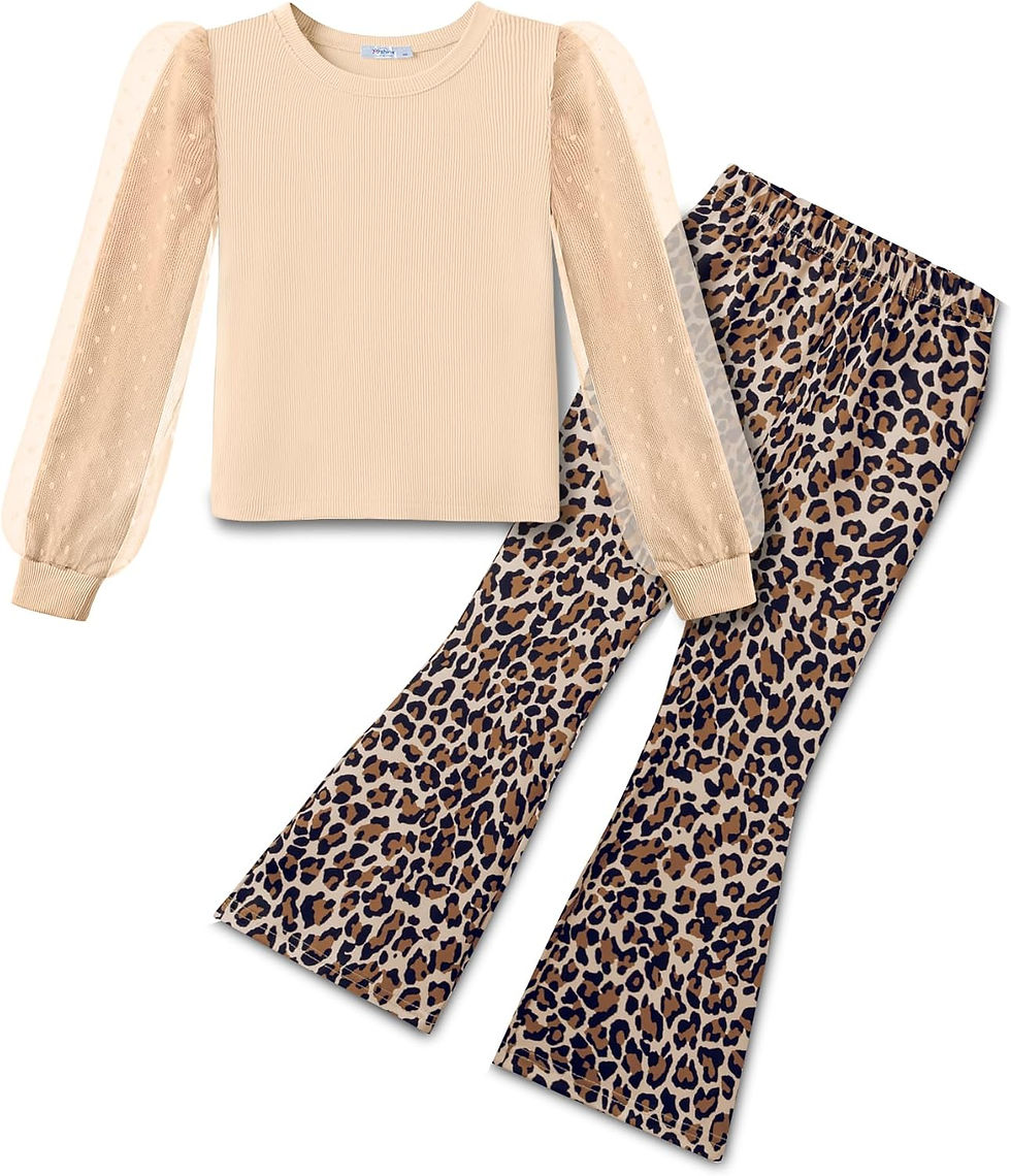 JiAmy Girl's Clothing Set Girl Flare Legging Set Fall Winter Outfit Ribbed Long