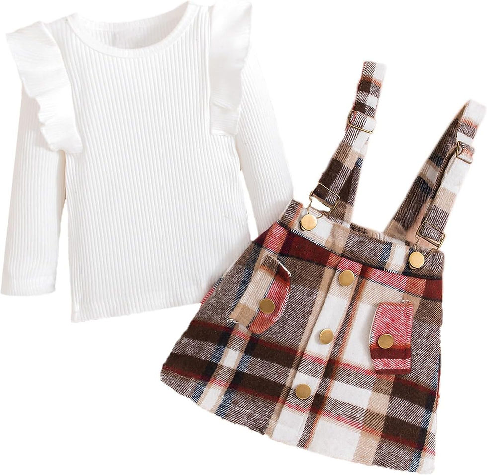 HPSOM Toddler Baby Girl Skirt Set Long Sleeve Ruffles Ribbed Top Shirt Plaid Su