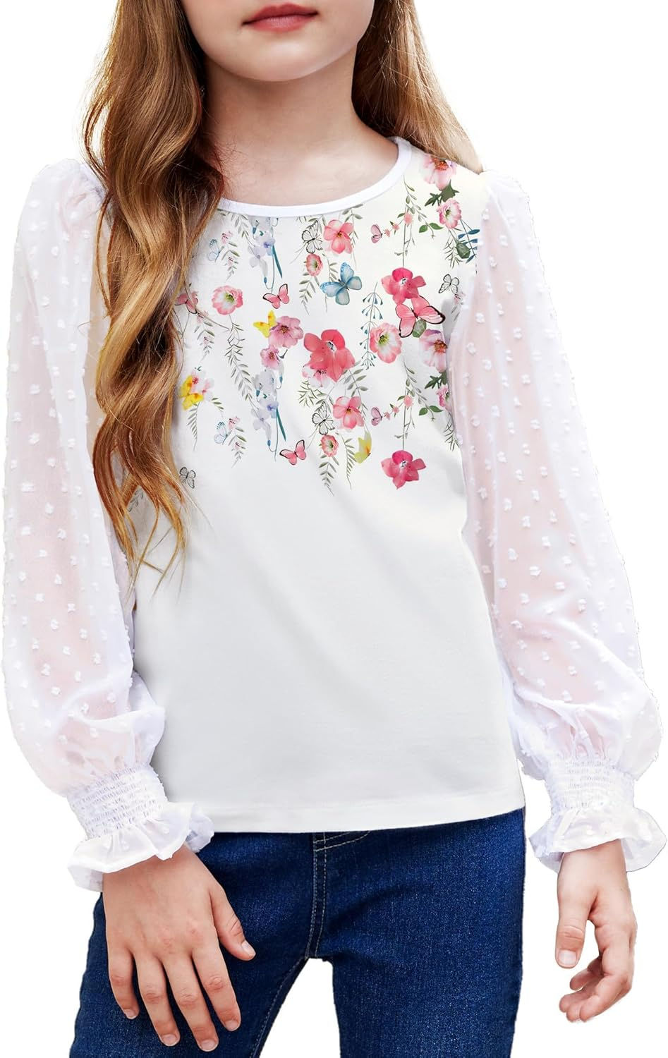 Arshiner Girls Long Sleeve Shirt with Smocked Ruffle Cuffs Polka Swiss Dots Kid