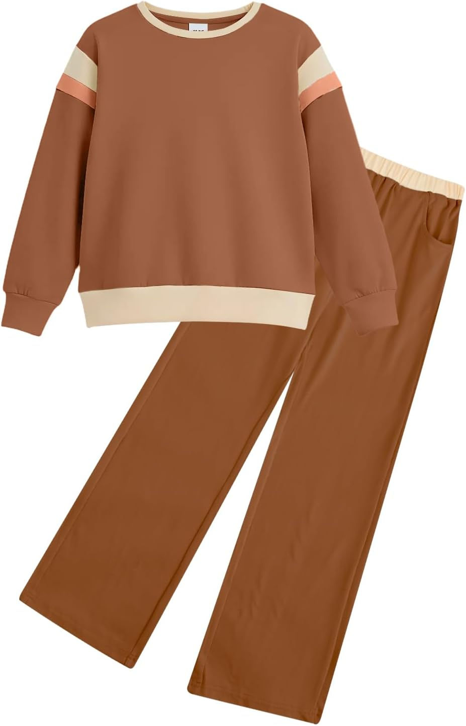 JiAmy Girls Clothing Sets Fall 2 Piece Color Block Outfits Long Sleeve Stylish