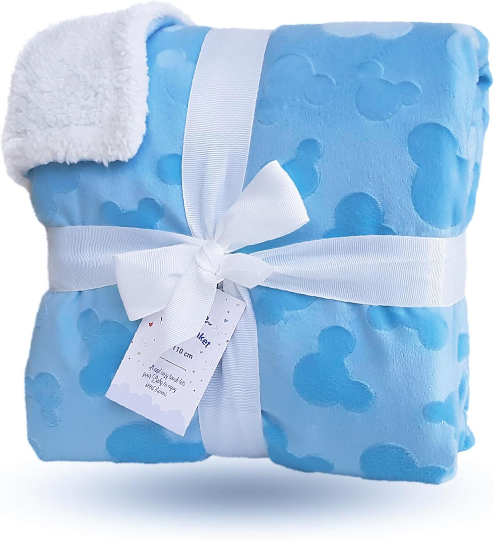 eYone Baby Blanket 80×110 cm - Soft Fleece & Sherpa - Newborn Boy Blanket for P