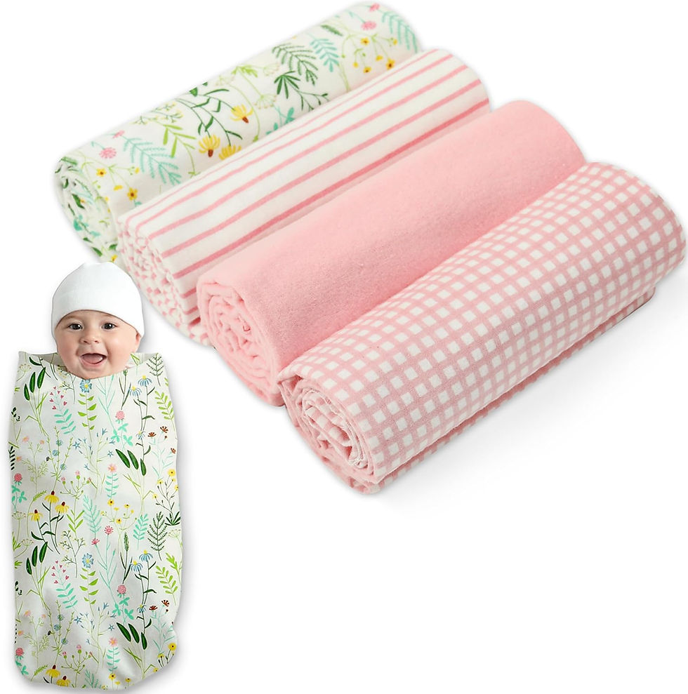 Mother's Choice Baby Flannel Blanket 4 Pack | Cotton Receiving Blanket for Newb