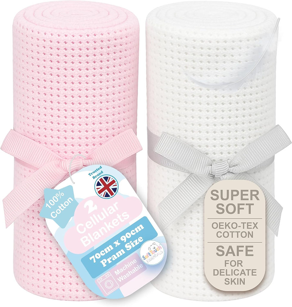 Soft Touch Newborn Essentials 70 x 90cm Cotton Baby Cellular Blanket for Pram,