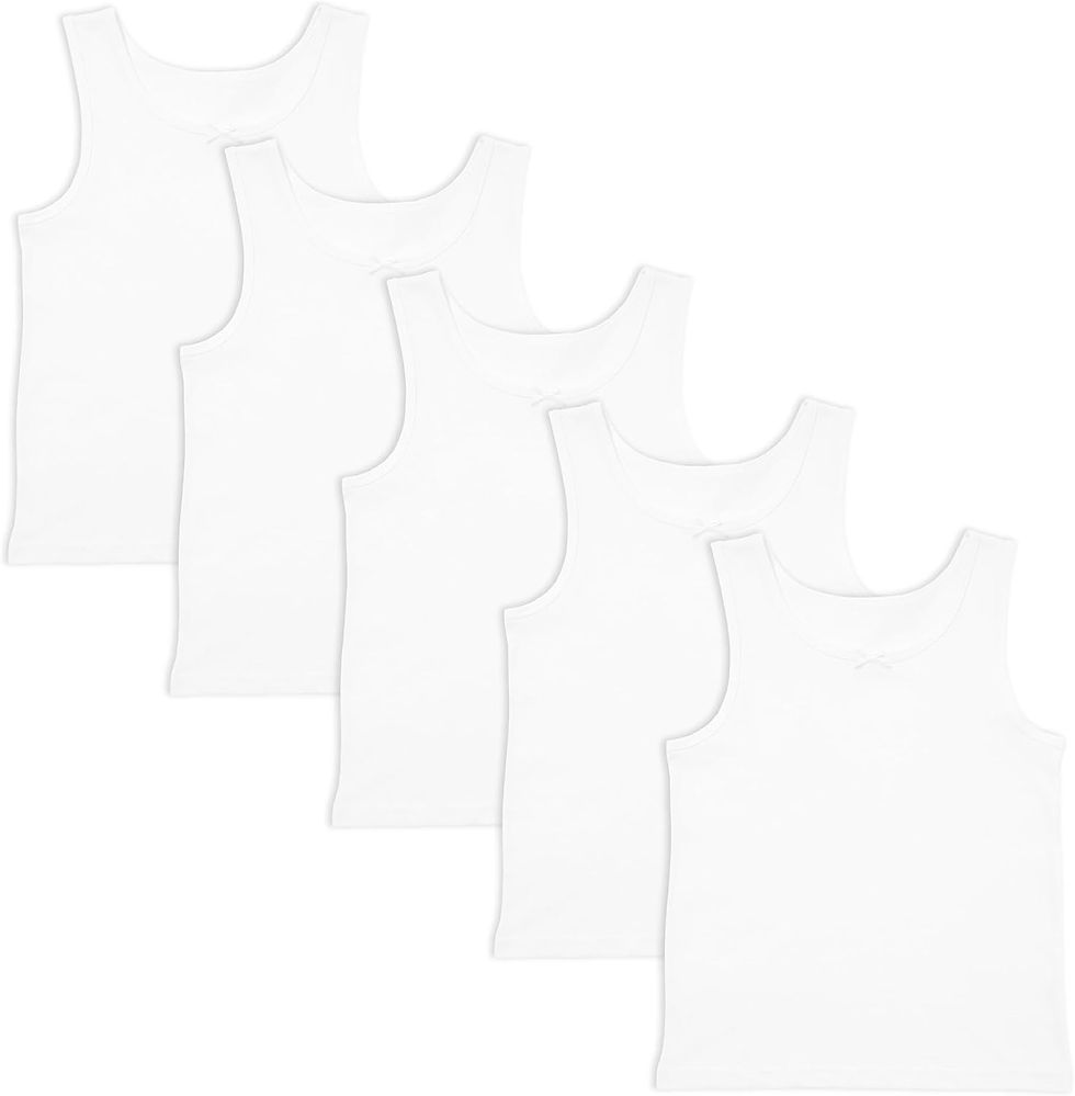Girls 5 Pack Vests Underwear Sleeveless Kids 100% Cotton White Pastel Size 2-12