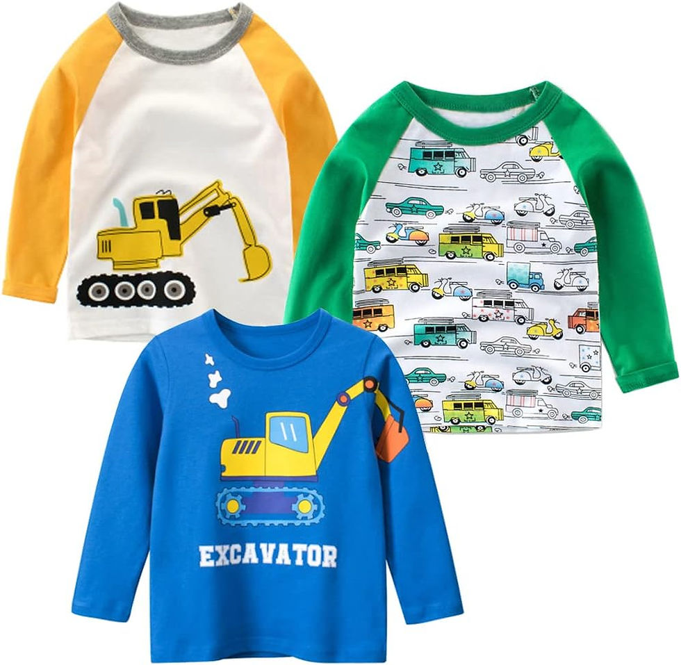SUPFANS Toddler Boys 3-Pack Long Sleeve Excavator T-Shirt 100% Cotton Basic Top