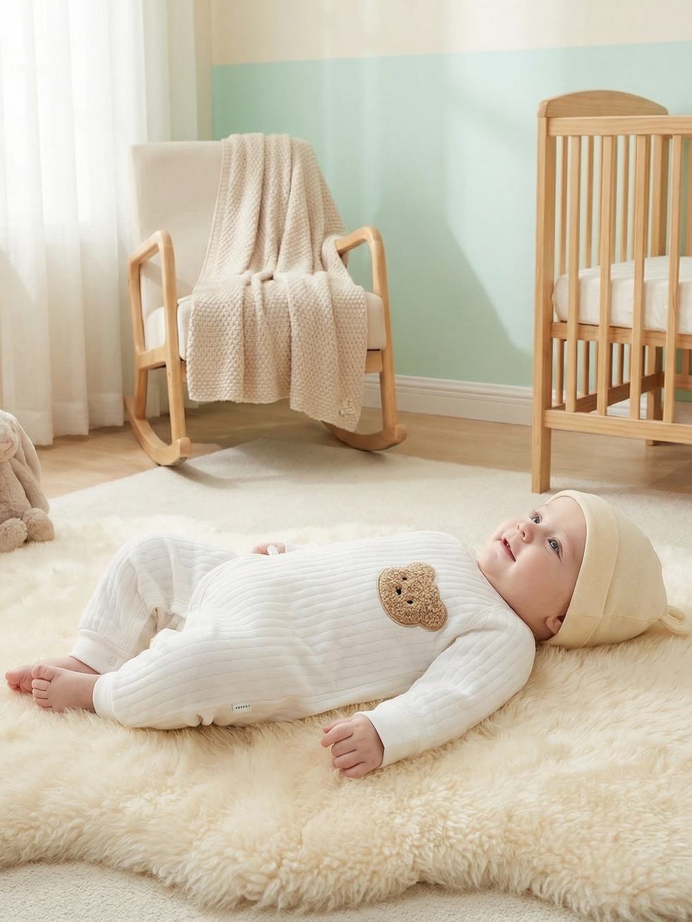 4、Thickened for Autumn and Winter: Our onesie features a thickened design, perfect for keeping your baby warm during the colder months of autumn and winter. Despite being thick, it remains soft and flexible, allowing your baby to move freely and comfortably.