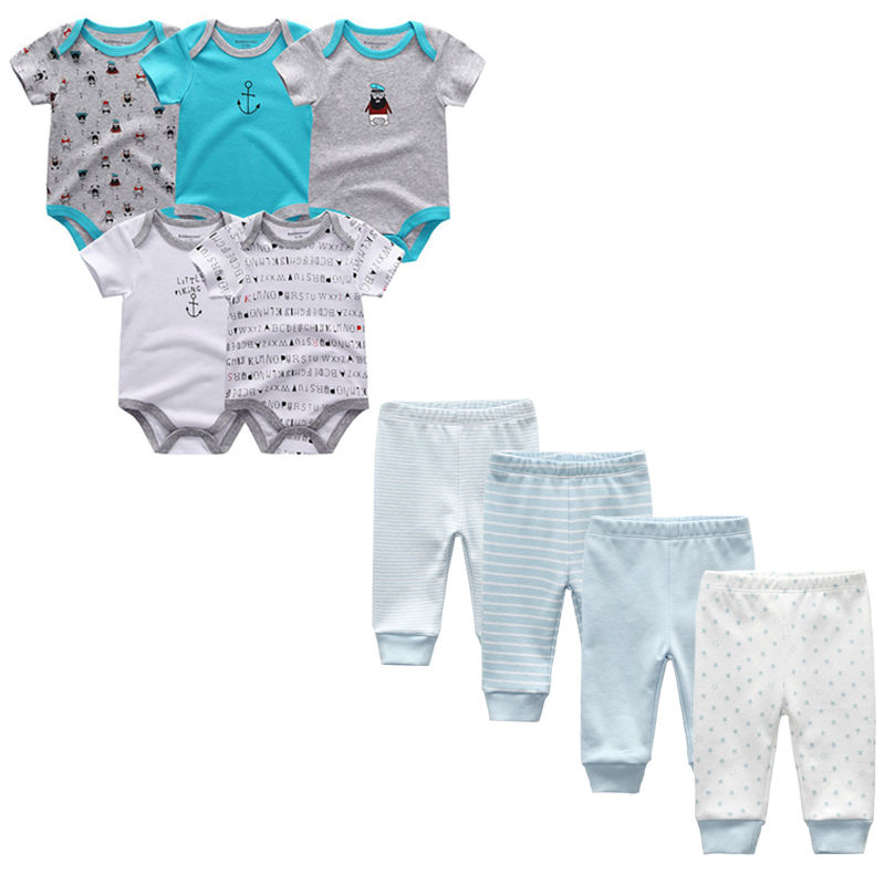 Kiddiezoom Brand 9pcs Baby Bodysuits Unisex Clothing Cartoon Newborn Boy girls b