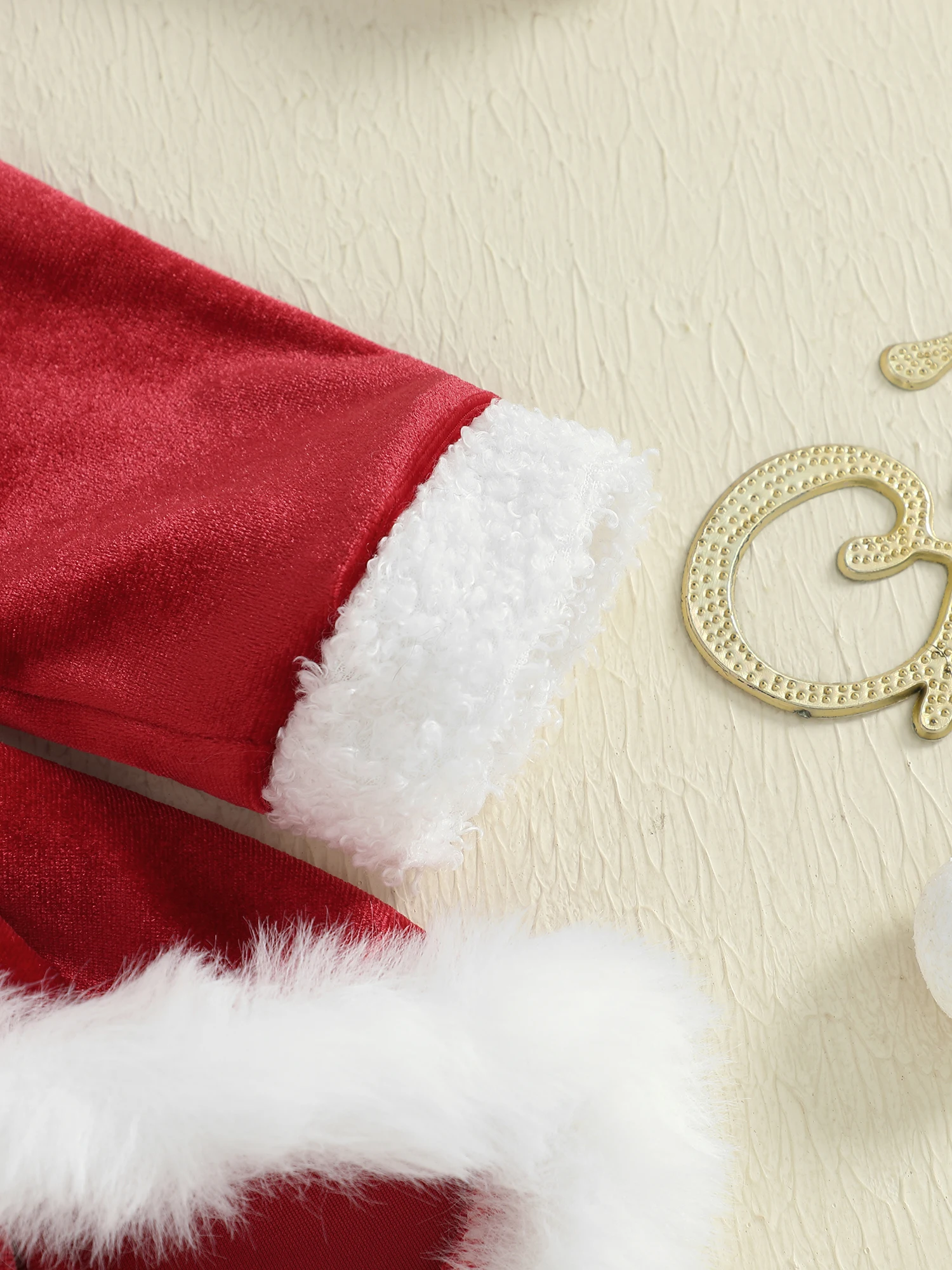 Newborn Baby Girl Christmas Bodyssuit Outfit Ruffle Long Sleeve Red Velvet Rompe