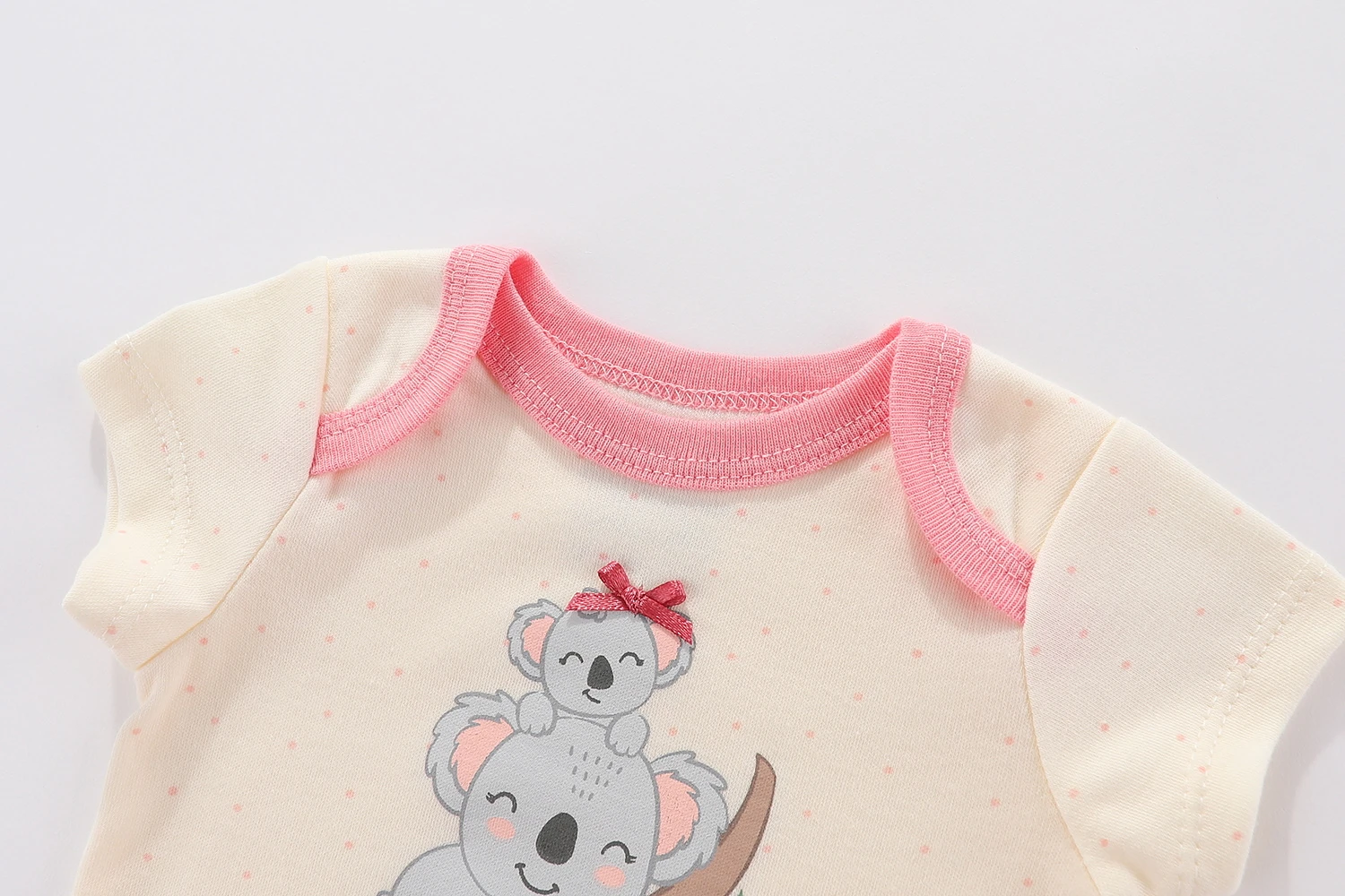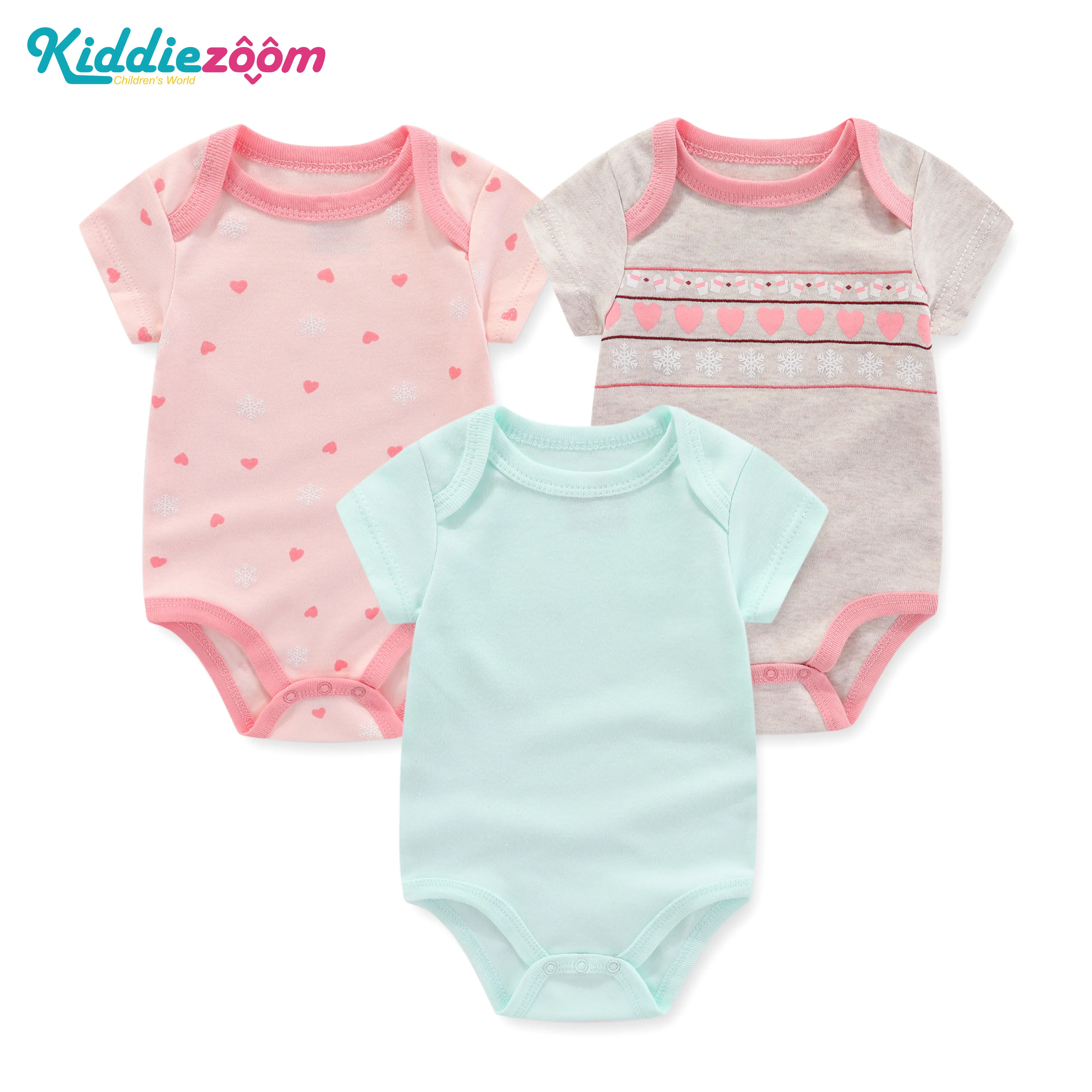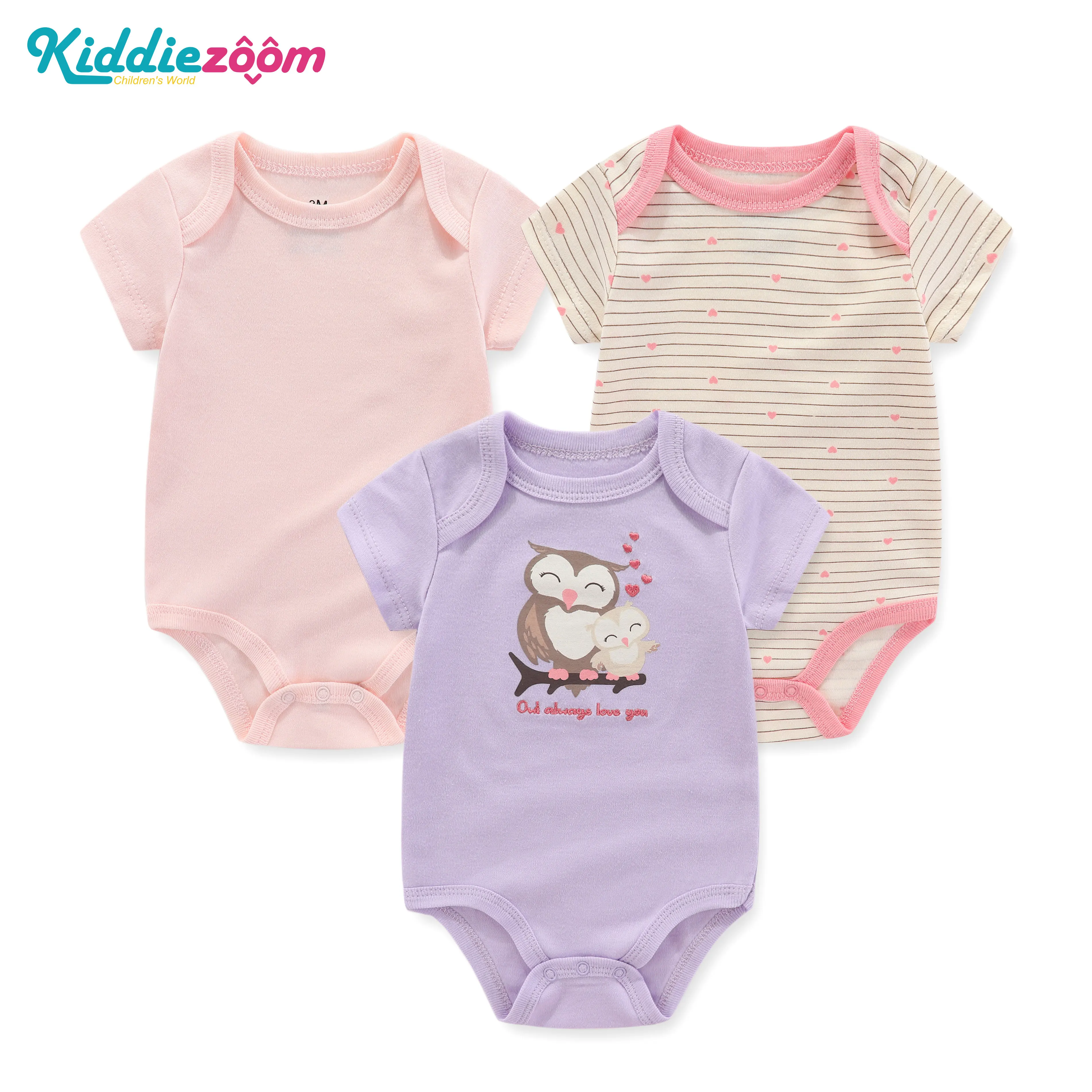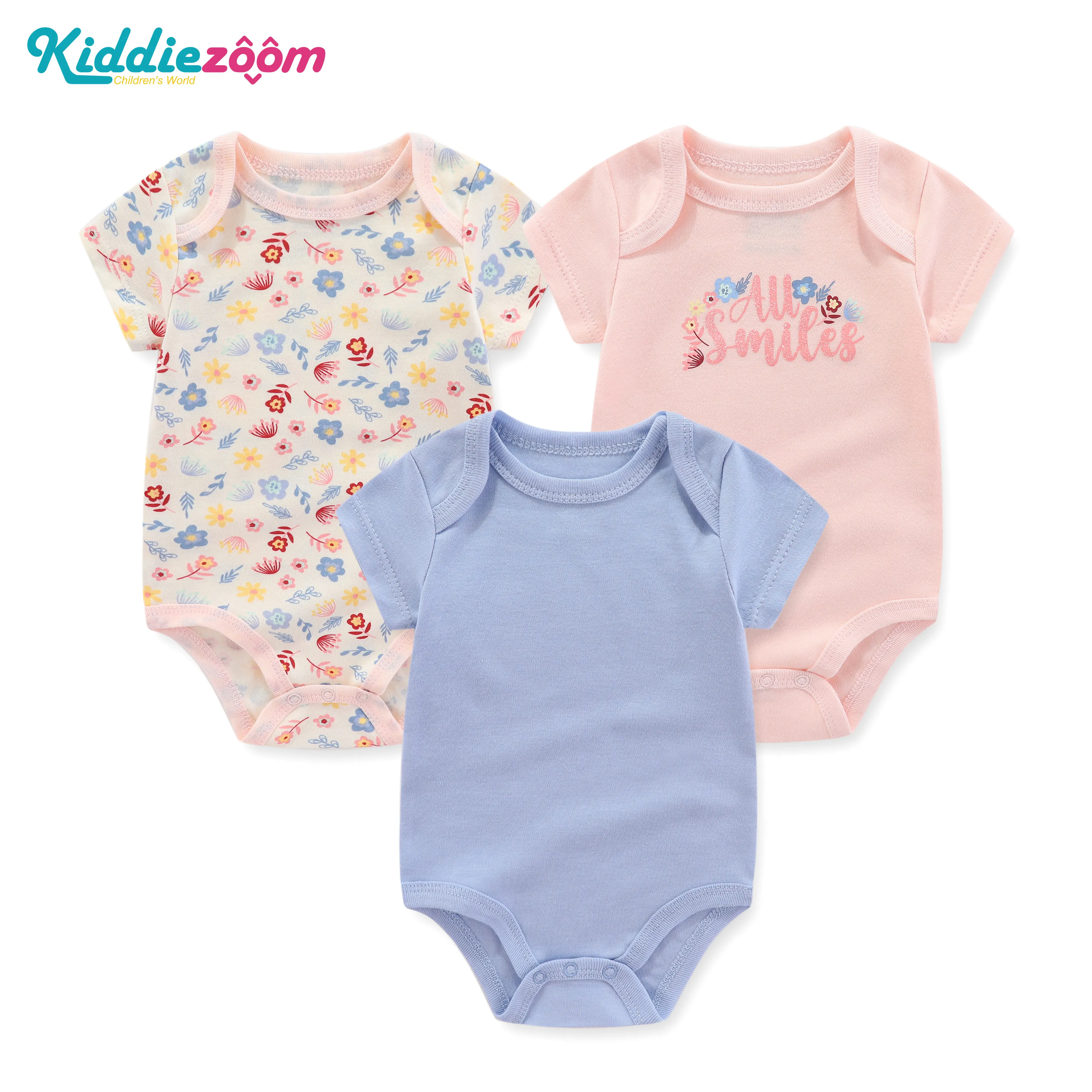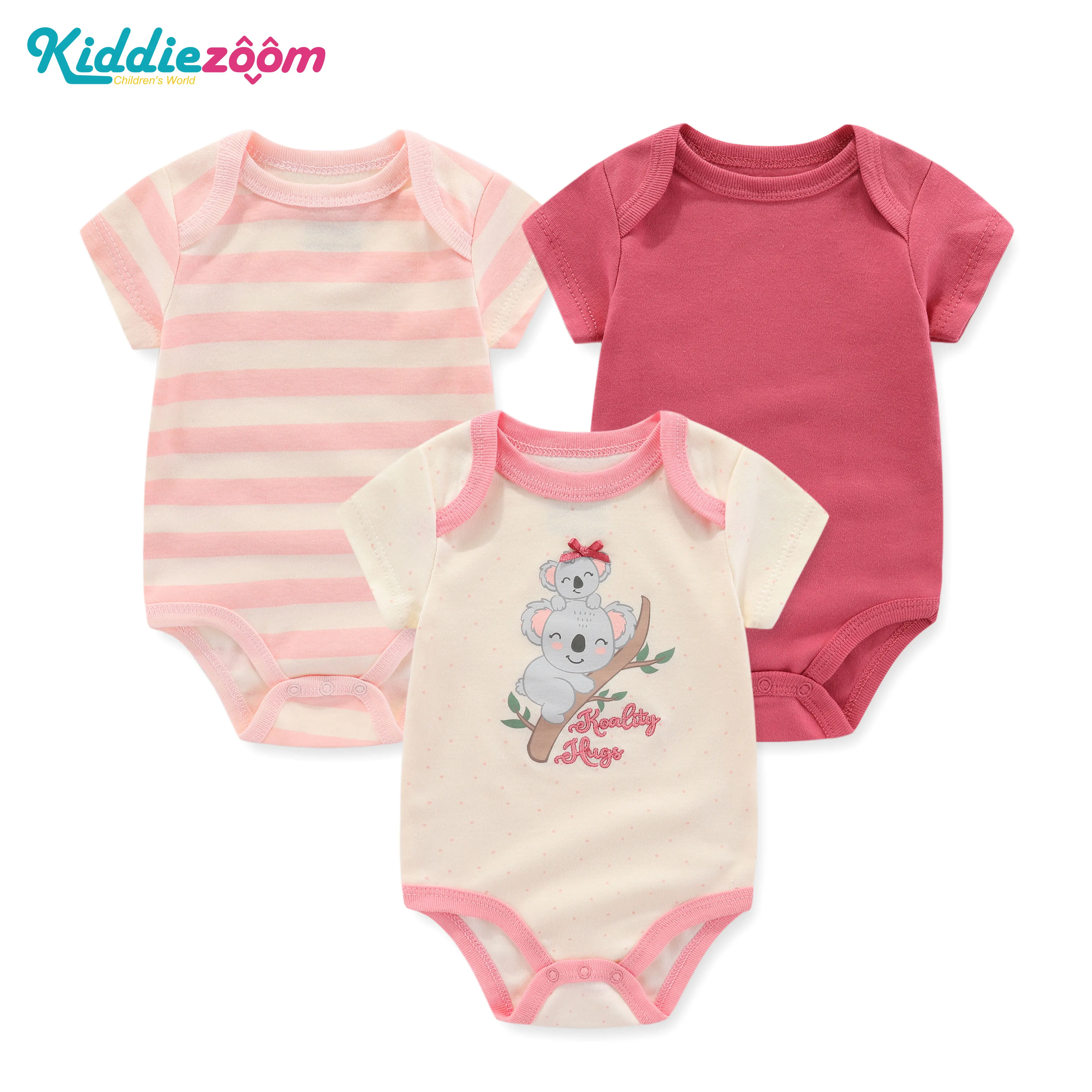 Newborn Baby Girl Clothes 3-piece Set Cute Cartoon Short Sleeve Romper 100% Cott